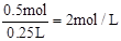 根据Na+守恒,可知溶液中有Na+0.5mol,所以c(Na+)=