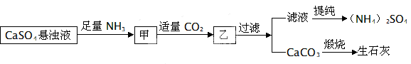1、选择题 某工厂用Ca SO4、NH3、HO、CO制备(NH4)2SO4,其工艺流程如下: