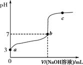 本题解析:对于选项A,a与b之间的溶液中初始阶段存在c(CH3COO-)>c(H+)>c(Na+)>c(OH-),后期阶段存在c(CH3COO-)>c(Na+)>c(H+)>c(OH-),该选项不正确;对于选项C,b点时,因c(H+)=c(OH-),故有c(CH3COO-)=c(Na+),因此V(NaOH溶液)<20 mL。