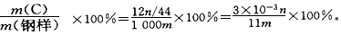 2、计算题 将mg某钢样放在氧气流中灼烧,得n mg CO2,钢样中碳的质量分数是多少?