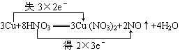 3Cu+8HNO33Cu(NO3)2+2NO↑+4H2O,若有6 mol e