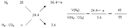 设混合气为100 L,则V(N2)=" 45" L,V(H2、CO2)=" 55" L。
