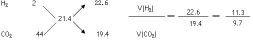 再利用十字交叉法,可求得H2与CO2的体积比: