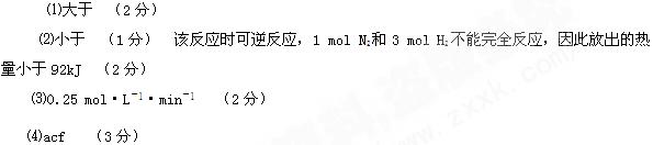 ⑵如果将1 mol N2和3 mol H2混合,使其充分反应,放出的热量?(“大于”、“小于”、“等于”)上述数值,其原因是?;