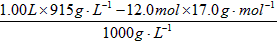 1.00L该氨水中含水的质量为1.00L×915g·L-1-12.0mol×17.0g·mol-1