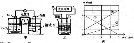 (3)将上述反应设计成的电解池如图乙所示,乙烧杯中金属阳离子的物质的量与电子转移的物质的量的变化关系如图丙,请回答下列问题: