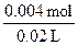 4、填空题 实验室常用的浓盐酸密度为1.17 g·mL-1,质量分数为36.5%。