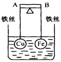 4、选择题 如下图所示,杠杆AB两端分别挂有体积相同、质量相等的空心铜球和空心铁球,调节杠杆并使其在水中保持平衡,然后小心地向烧杯中央滴入浓CuSO4溶液,一段时间后,下列有关杠杆的偏向判断正确的是(实验过程中,不考虑铁丝反应及两球的浮力变化)