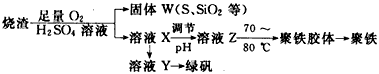3、实验题 聚合硫酸铁又称聚铁,化学式为[Fe2(OH)n(SO4)3-0.5n]m,广泛用于污水处理。实验室利用硫酸厂烧渣(主要成分为铁的氧化物及少量FeS、SiO2等)制备聚铁和绿矾(FeSO4·7H2O)过程如下