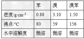 5、实验题 溴苯是一种化工原料,实验室合成溴苯的装置示意图及有关数据如下: