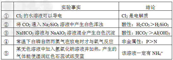 5、选择题 从下列事实所得出的相应结论正确的是?
