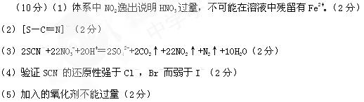 (2)乙同学认为红色消失,说明Fe(SCN)3被破坏,红棕色NO2说明了某些离子与HNO3发生了氧化还原反应,推测可能是KSCN与HNO3作用。根据C、S、N的原子结构和共价键的相关知识推断SCN-的结构式为?。