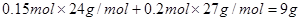 答:合金的质量为9g;原稀硫酸的物质的量浓度为2.5mol/L