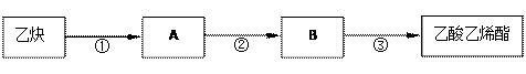 只用乙炔为有机原料合成乙酸乙烯酯(CH3COOCH=CH2),合成路线如下: