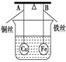 本题解析:若杠杆是绝缘体,则不同构成原电池。由于铁比同活泼,因此铁可以置换出铜,置换出的铜附着在铁表面,质量增加,即A端高,B端低。当杠杆时导体时,则构成原电池,铁是负极,失去电子被氧化。铜是正极,溶液中的铜离子得到电子而析出铜,析出的铜附着在铜表面,质量增加,所以A端低,B端高。答案是D。