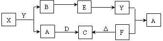 3、填空题 下图所示物质中,只有X是单质,常温下A和B呈气态,且B是导致酸雨的大气污染物,D是淡黄色固体。