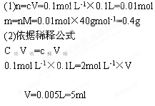5、计算题 (16分)实验室需要0.1 mol /L氢氧化钠溶液100 mL,现有2 mol /L氢氧化钠溶液。