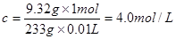 4、计算题 有一硫酸和硝酸的混合溶液,取出其中的10mL,加入足量 BaCl2溶液,将生成的沉淀滤出洗净,烘干称得其质量为9.32g;另取此溶液10mL与4.00 mol·L-1的NaOH溶液25mL恰好完全中和。求: