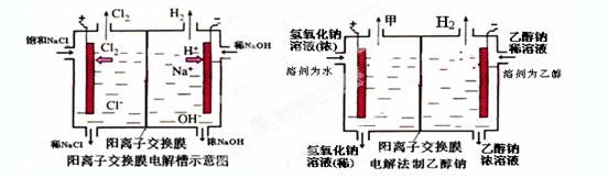 ⑷某化学课外兴趣小组设计了用电解法制取乙醇钠的工业方法,所用的电解槽如上右图所示,设计要求:①所用的交换膜不能让分子自由通过;②电解过程中消耗的原料是氢氧化钠和乙醇。回答下列问题: