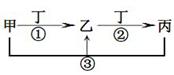4、选择题 甲、乙、丙、丁是中学常见的物质,其中甲、乙、丙均含有同一种元素,在一定条件下的转化关系如图,下列说法正确的是