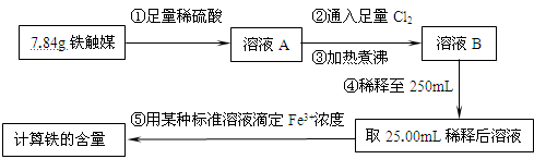 方案一:用下列流程测定铁触媒的含铁量,确定其组成。