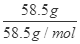 B.1 mol NaCl的质量是58.5 g·mol-1