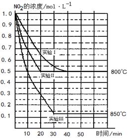 在三种不同条件下进行,其中实验Ⅰ、Ⅱ都在800℃,实验Ⅲ在850℃,NO、O2的起始浓度都为0,NO2的浓度(mol·L-1)随时间(min)的变化如图所示。请回答下列问题:
