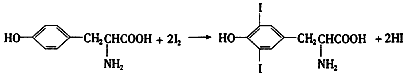 2、填空题 碘在人体生命活动中具有重要作用,人从食物中摄取碘后,碘便在甲状腺中积存下来,通过一系列的化学反应形成甲状腺素,甲状腺素的结构为