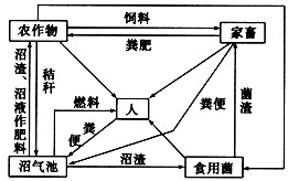5、连线题 1985年前,某地农村农作物秸秆都是当作燃料而农户和家畜的粪便等均作为肥料直接施入农田。后来逐步开始进行农村产业结构调整,下图是2006年时当地生态工程示意图。