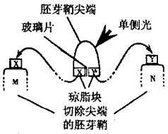 4、选择题 如图表示一项关于生长素的研究实验,以下哪一项关于实验结果的叙述是正确的