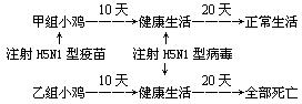 2、选择题 科学家初步研制出H5N1型禽流感疫苗,投入使用前,以未感染H5N1病毒的一群健康小鸡(随机分为甲、乙两组)为实验动物进行了实验,过程和结果见下图: