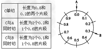 5、选择题 (附加题)一环状DNA分子,设其长度为1。限制性内切酶A 在其上的切点位于0.0处;限制性内切酶B 在其上的切点位于0.3处;限制性内切酶C的切点未知。C单独切或与A或与B同时切的结果如下表,请确定C在该环状DNA分子上的切点应位于图中的