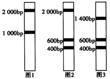 2、选择题 现有一长度为3000碱基对(bp)的线性DNA分子,用限制性核酸内切酶酶切后,进行凝胶电泳,使降解产物分开,用酶H单独酶切,结果如图1,用酶B单独酶切,结果如图2,用酶H和酶B同时酶切,结果如图3,该DNA分子的结构及其酶切图谱是