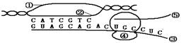 5、选择题 某双链DNA分子中含有200个碱基,一条链上A:T:G:C=1:2:3:4,则该DNA分子