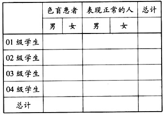 3、综合题 红绿色盲是一种人类遗传病。某中学生物兴趣小组开展研究性学习,对该校01、02、03、04级学生中红绿色盲的发病情况进行调查。