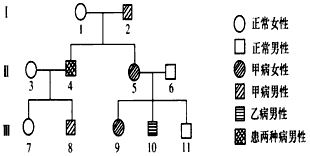 (1)上图为两种遗传病系谱图,甲病基因用A、a表示,乙病基因用B、b表示,6号个体无致病基因。4号个体基因型为____,7号个体基因型为_____,如果8与9婚配,生出正常孩子的概率为_____。