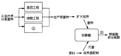 (2)在发酵过程中,产物源源不断地产生。这说明赖氨酸或谷氨酸的生产采用了_________的发酵方式。在生产过程中,由于赖氨酸或谷氨酸的发酵菌种为_________,常需增加通氧量。当发酵生产的产品是代谢产物时,还要采用②_______等分离提纯的方法进行提取。