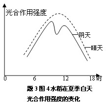 4、选择题 在图中,图1、图2为不同材料叶绿体中色素的层析结果(示意图),图3、图4为不同条件下水稻光合作用强度的变化曲线,其中正确的是