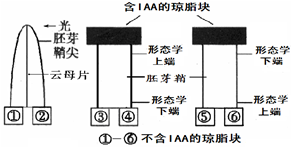 C.⑤、⑥琼脂块中都有IAA,⑤≈⑥