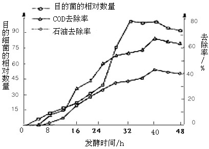 (5)为探究目的菌株不同发酵时间发酵液的絮凝效果,将目的菌株进行发酵培养,定时取发酵液,加入石油污水中:同时设置__________________为对照组。经搅拌、静置各3分钟后,分别测定上层水样的石油浓度COD值(COD值越高表示有机物污染程度越高),计算石油去除率和COD去除率,结果如下图。