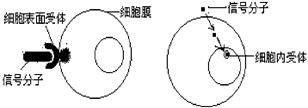 3、选择题 下图表示不同的信号分子对靶细胞作用的方式。根据下图可知靶细胞上接受信号分子的受体有两种,一类是细胞表面受体,一类是细胞内受体。信号分子与受体结合的部位与细胞膜的特性以及信号分子的化学性质有关。下面所列物质属于信号分子并且能通过细胞内的某些物质选择性的识别和结合而实现的是