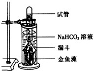 实验步骤:①准备4套如下图所示装置,编号为1-4。在瓶中各加入约500mL浓度为0.01g/mL的NaHCO3溶液后用冷开水充满。②取4等份长势相同的黑藻分别放入1-4号装置。③将4套装置放入暗室中,然后分别用50W、100W、200W和400W的台灯等距离地照射1-4号装置,观察气泡的产生情况。④30min后停止光照,测量光合作用释放的O2体积(mL)。