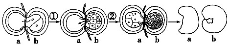 4、选择题 细胞核具有什么功能?科学家通过下列实验(见下图)进行探究:①用头发将蝾螈的受精卵横缢为有核和无核的两半,中间只是很少的细胞质相连,结果无核的一半(a)停止分裂,有核的一半(b)能继续分裂;②b部分分裂到16~32个细胞时,将一个细胞核挤入到不能分裂的a部分,结果a部分开始分裂、分化,进而发育成胚胎。下列叙述中,不正确的是