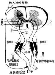 (3)神经冲动会由脊髓中的中间神经元向上传导至大脑皮层
