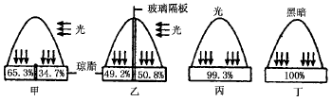 1、选择题 在人工控制的不同光照条件下测定燕麦胚芽鞘中(尖端以下)生长含量的相对浓度(如下图),测定结果可以说明?