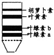 4、选择题 下图为某同学对植物叶绿体中色素分离的结果,其中所标记的色素名称或颜色正确的是