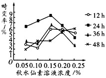 2、选择题 已知细胞畸变率(%)=(畸变细胞数/细胞总数)×100%。下图表示采用不同浓度的秋水仙素溶液及不同处理时间对黑麦根尖细胞畸变率的影响。下列有关叙述中,正确的是
