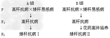 (2)B组通过花药离体培养得到的矮秆抗病Ⅱ的基因型是__________,它不能直接用于生产,因为它_________,欲想获得符合生产要求的矮秆抗病小麦新品种还需用___________处理矮秆抗病Ⅱ的幼苗。