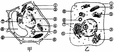 (2)甲图中具有双层膜结构的细胞器是__________(填编号);乙图中能够产ATP的场所是______(填编号)。