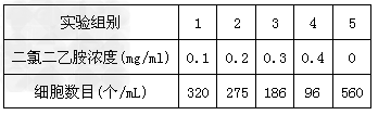 1、探究题 某生物兴趣小组的同学从资料上获知:二氯二乙胺能够阻止参与DNA复制的酶与DNA相互作用。他们推测:二氯二乙胺能抑制癌细胞的增殖,能作为一种癌症的化疗药物,并就此问题设计实验进行了探究。